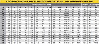 • Hook, Nut and crosshead forged, heat-treated and thread fully machined as per DIN15403 design