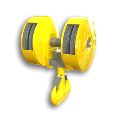 • Rodamiento: axial para el conjunto del gancho + rodillos/bolas para poleas