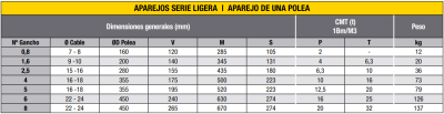 • Polea: 1 (2 ramales). Laminada soldada o de plástico (Nylon). Tamaño máx.450mm (diámetro interior
