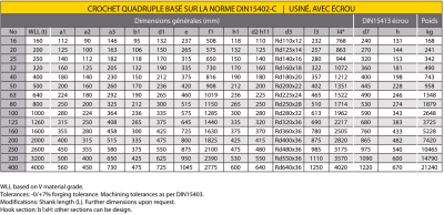 • Crochet, écrou et traverse forgés, traitement thermique et filetage totalement usiné conformément à la conception DIN15403