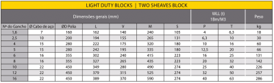 • Rolamento: axial para conjunto gancho + roletes/esferas para polias.