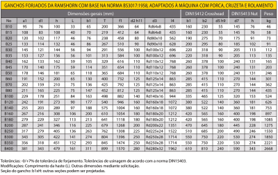 • Gancho, porca e cruzeta forjados, tratados termicamente e com rosca totalmente usinada de acordo com o projeto DIN15403.