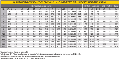 • Gancho, porca e cabeça cruzada forjados, tratados termicamente e com rosca totalmente usinada de acordo com o projeto DIN15403.