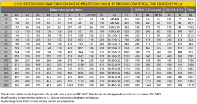 • Gancho, porca e cruzeta forjados, tratados termicamente e com rosca totalmente usinada de acordo com o projeto DIN15403.
